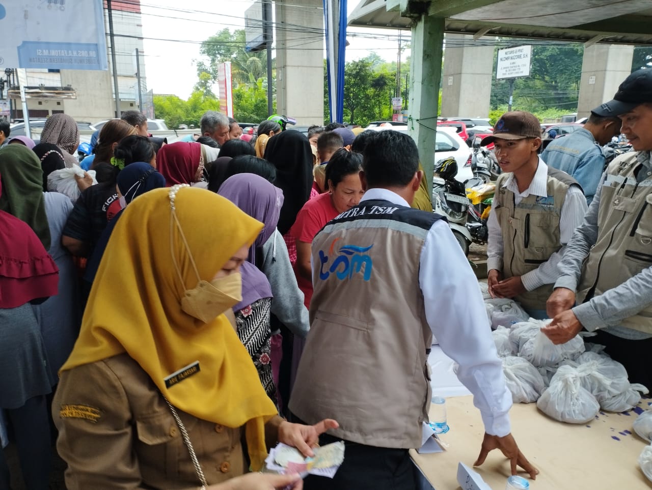 PT Tirta Sriwijaya Maju (Perseroda), perusahaan penyedia air bersih di Sumatera Selatan melaksanakan operasi pasar murah sebagai bentuk kepedulian terhadap masyarakat di tengah tingginya harga bahan pokok